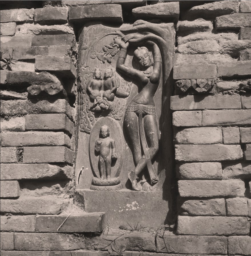 An 8th C. CE bas relief depicting the birth of the Buddha. Originally located in Kathmandu Valley, it was photographed by Ganesh Man Chitrakar in the 1970s as part of a critical survey of monuments and statuary in Kathmandu Valley led by the Austrian architect and planner Carl Pruscha. The relief currently resides at the National Museum of Nepal.